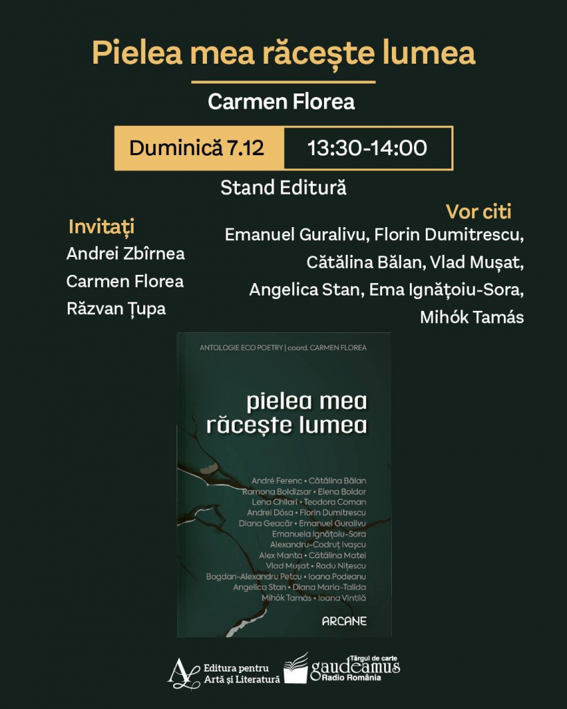 În timp ce unii vor vedea în IA un instrument revoluționar, capabil să democratizeze accesul la creație, alții vor ridica semne de întrebare legate de etică, autenticitate și potențialele „litigii” privind proprietatea intelectuală. Prin această dezbatere, se va căuta o înțelegere echilibrată a modului în care „vom putea integra inovația tehnologică fără a compromite esența actului creator și drepturile fundamentale ale autorilor”, oferind astfel o perspectivă nuanțată asupra unei realități în plină transformare. Eu merg în târgul Gaudeamus de la 13.30 să lansez o antologie de poezie, eco poetry coordonată de Carmen Florea, ”Pielea mea răcește lumea”, la Editura pentru Artă și Literatură.