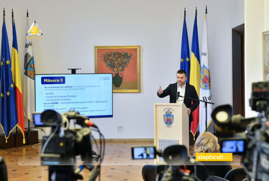 De asemenea, șapte instituții de evenimente (Creart, Arcub, Proedus etc.) vor fi comasate într-o singură Direcție Generală de Arte și Evenimente Urbane, desființând 112 posturi și economisind peste 4 milioane de lei. Similar, ALPAB, Centrul de Protecția Plantelor și Administrația Cimitirelor se vor uni în ADPMB, reducând 260 de posturi și aducând o economie de 3 milioane de lei.