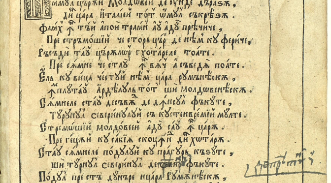 Istoricii au arătat că prima mențiune clară despre folosirea alfabetului latin la români îi aparține lui Dimitrie Cantemir, care, în 1714, în Descriptio Moldaviae, notează că, înainte de Conciliul de la Florența, moldovenii foloseau litere latine, asemenea altor popoare de limbă romanică. După sinod, însă, în contextul trecerii mitropolitului Moldovei de partea catolicilor, urmașul acestuia, Teoctist, de neam bulgar, dornic să elimine orice urmă de influență catolică și să împiedice tinerii să citească „sofismele papistașilor”, l-ar fi convins pe Alexandru cel Bun să îi izgonească pe disidenți și să înlocuiască alfabetul latin cu cel slavon. Cantemir interpretează acest gest drept un exces de zel. Dar și drept o „barbarie” care a marcat profund evoluția culturală și spirituală a Moldovei.