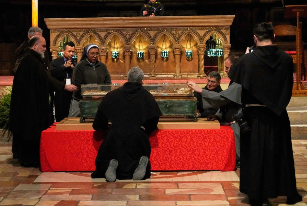 - Gestul, descris ca o „experiență semnificativă” pentru credincioși și necredincioși, marchează 800 de ani de la moartea sfântului.