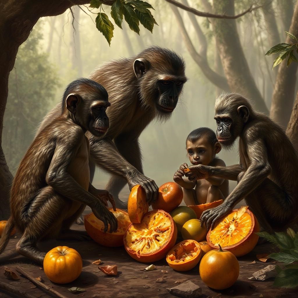 Studiul introduce un nou termen antropologic, „scrumping”, pentru a descrie actul de a aduna fructe căzute pe pământ, adesea fermentate. Cercetătorii au constatat că maimuțele africane sunt „scrumpers” în mod regulat. Chiar preferă fructele căzute pe pământ, care sunt mai ușor de accesat și mai puțin periculoase de obținut decât cele din copaci.